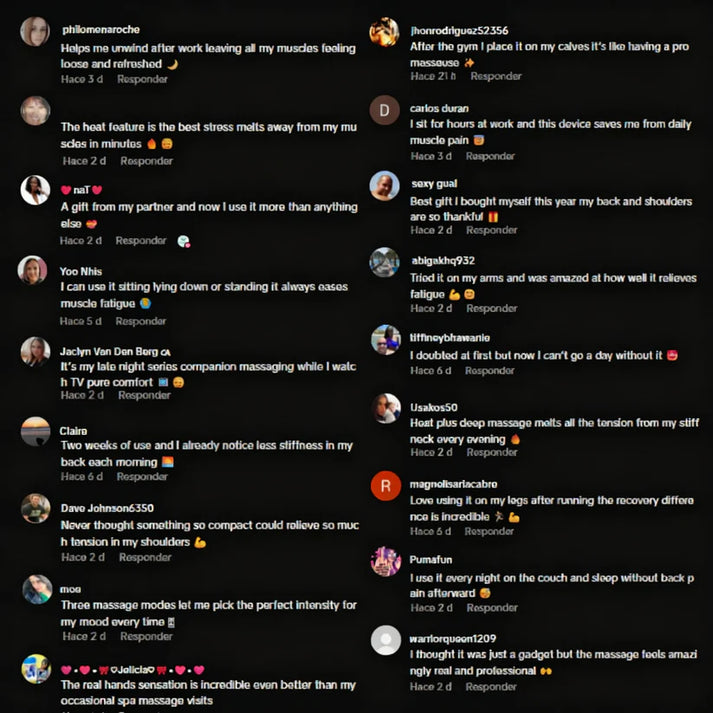 • “Honestly didn’t expect much, but this massager is a game changer. The heat + vibration combo helps my shoulders relax instantly. Great for use at home or in the car.”
